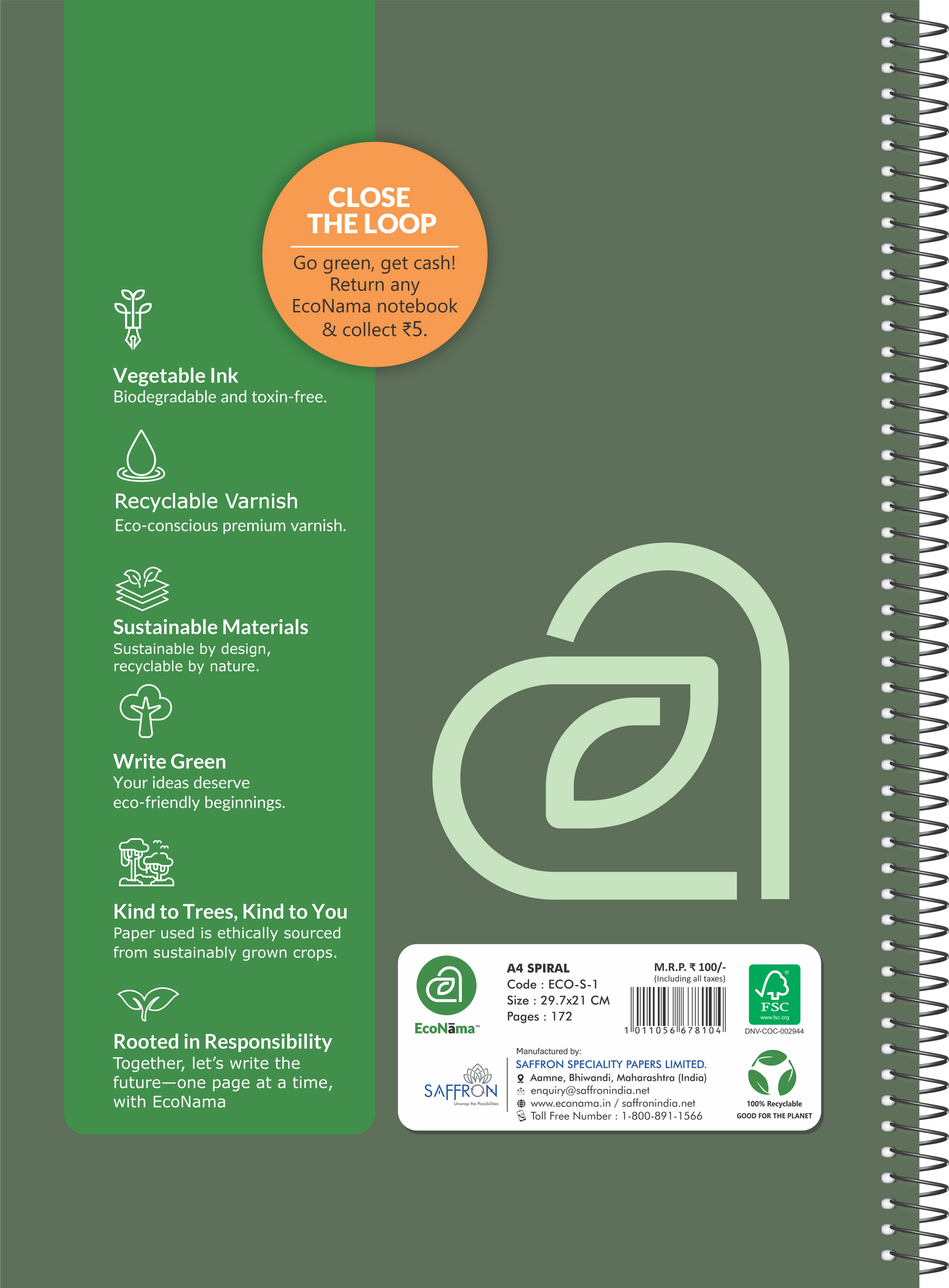 Rooted in the belief that creativity and responsibility go hand in hand, every notebook sparks a quiet revolution, inspiring action and shaping a future driven by your ideas. Stylish Design: Sleek and minimalistic design perfect for students, professionals, and creatives alike. Suitable for work, school, or personal use.